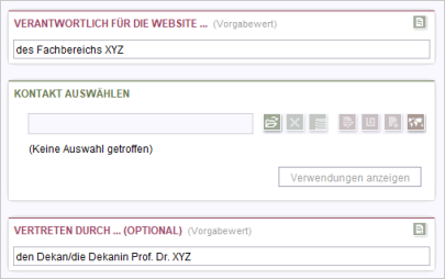 Ersetzen Sie bitte „den Dekan/die Dekanin Prof. Dr. XYZ“ durch die hauptverantwortliche Person der Webseite.