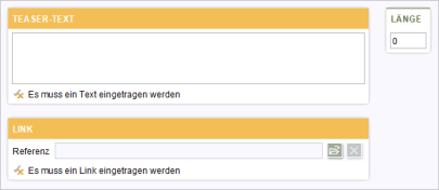 Ähnlich wie beim Box-Teaser besteht dieser Teaser aus einer Farblfäche und einem in ihr platzierten Text. Die Farbe entspricht jedoch der Auftrittsfarbe und kann nicht individuell angepasst werden.