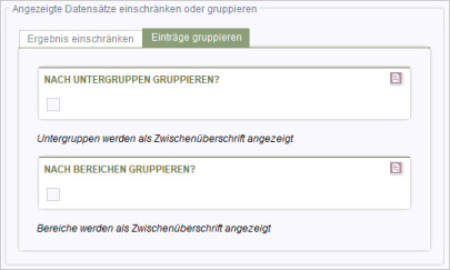 Die Einträge können mit verschiedenen Optionen gruppiert werden.