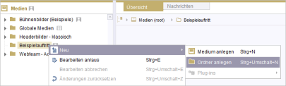 Im Bereich Medien können Ordner für eine bessere redaktionelle Strukturierung angelegt und genutzt werden.