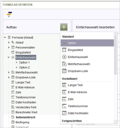 Einfachauswahl, Mehrfachauswahl und Dropdown-Liste